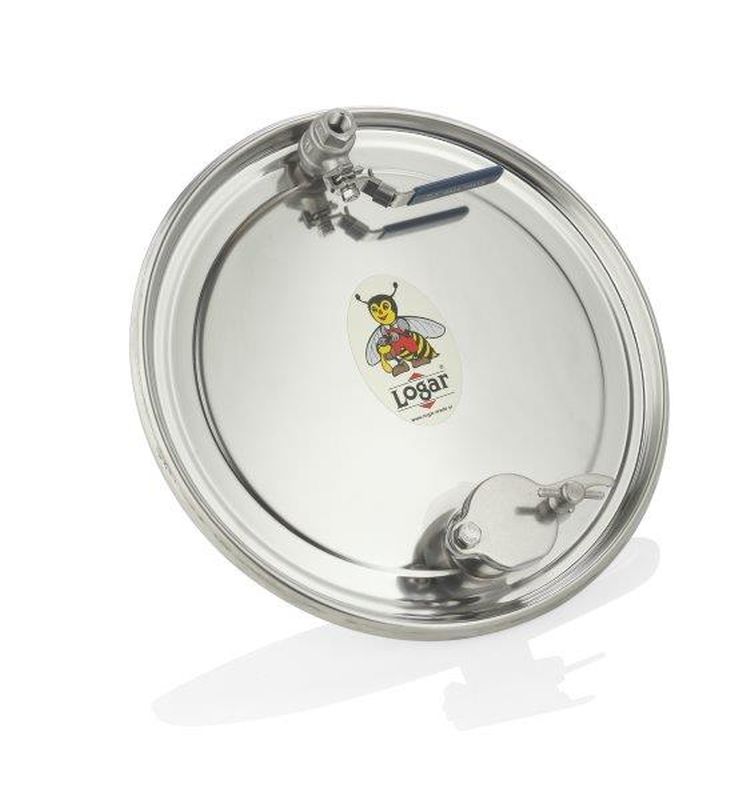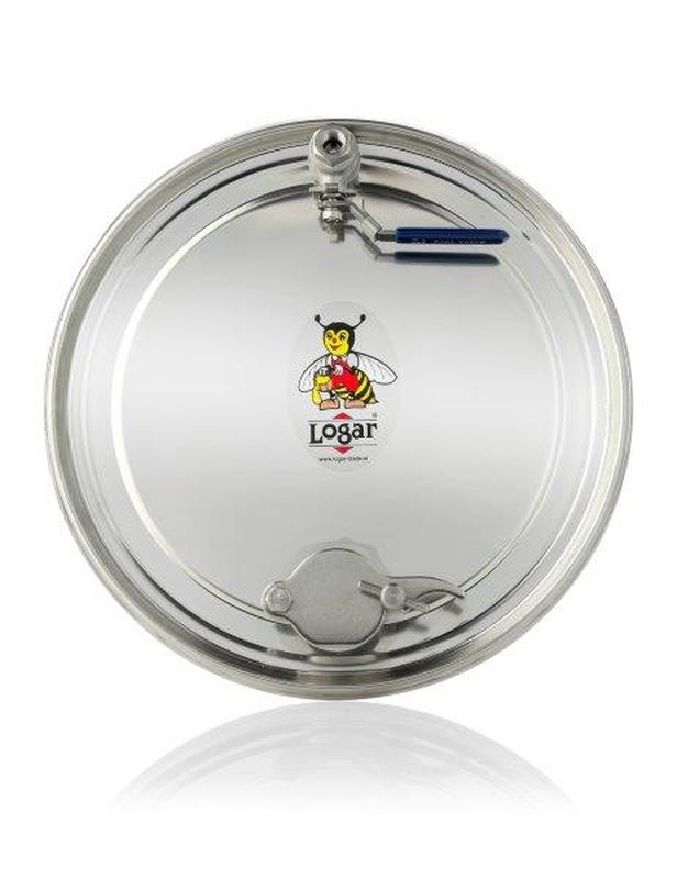 Der Deckel mit eingebautem Quetschhahn dient zum direkt liegenden Befüllen von Honig aus Lagerbehältern in Gläser. Durch den Einbau dieses Deckels können Benutzer mit mehreren LOGAR® Lagertanks ohne Quetschhahn Honig direkt in die Gläser füllen. Der Deckel verfügt über einen auf den oberen Teil eingebauten Entlüftungsventil.