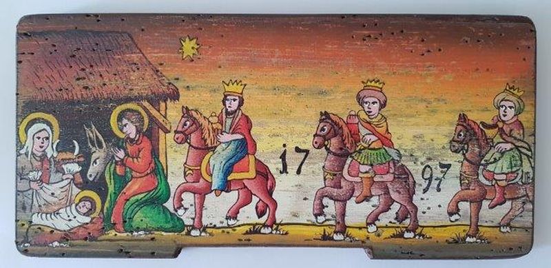 Bemalte Bienenstockstirnbretter - Die Huldigung der drei Könige