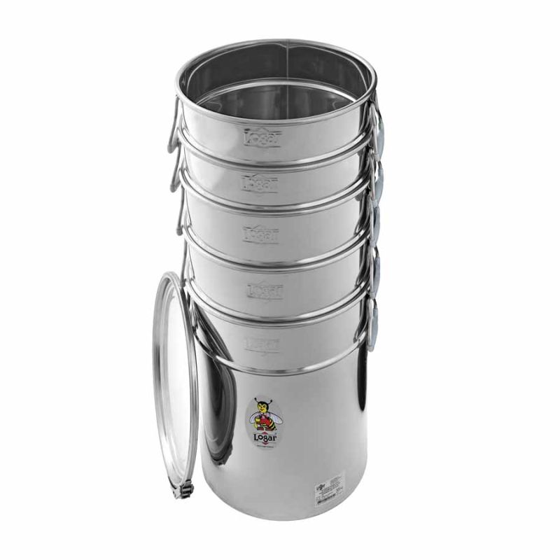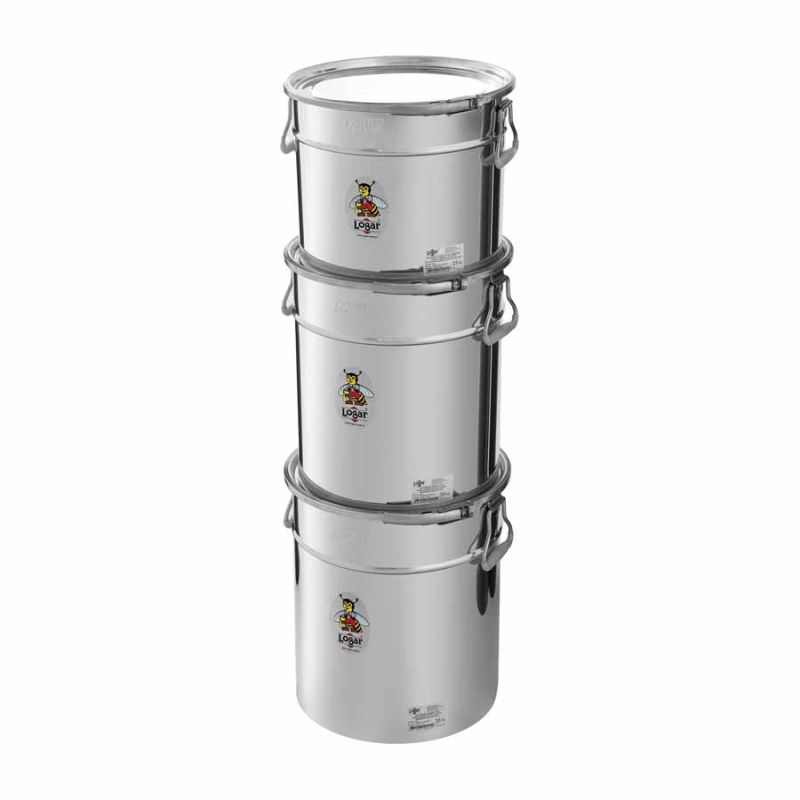 Die Silikondichtung im Deckel und der rostfreie Spannring gewähren eine hermetische Abdichtung. Honig ist sehr hygroskopisch, daher empfehlen wir Ihnen die Lagerbehälter mit einer hermetischen Abdichtung, falls Sie den Honig länger lagern möchten. Die Lagerbehälter können aufeinander gelagert werden, was Ihnen eine bessere Platzausnutzung ermöglicht.